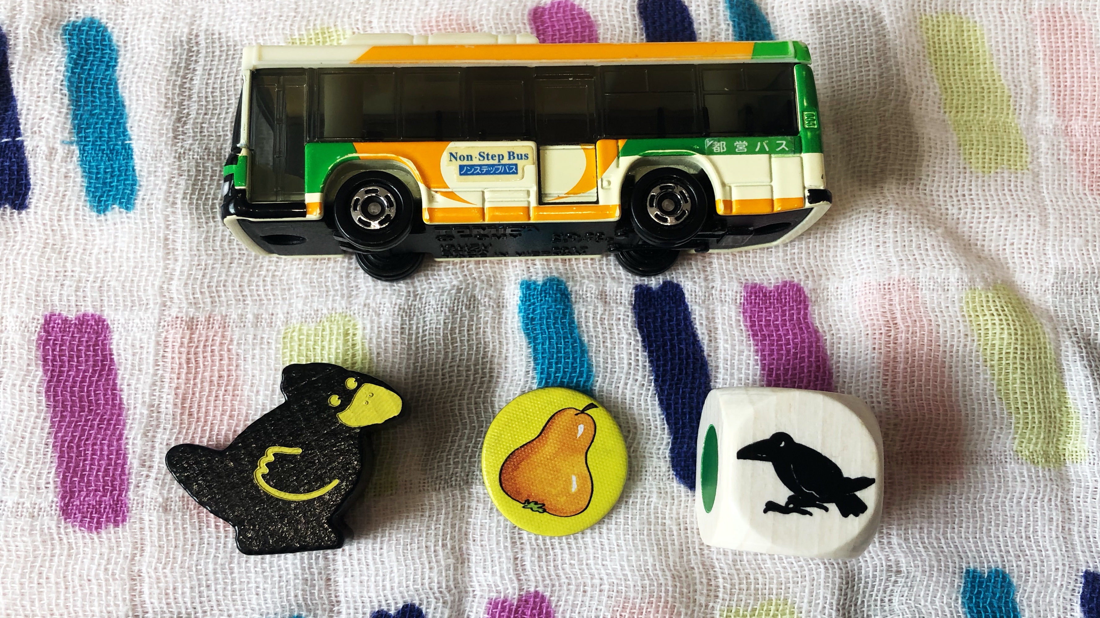 大きさ比較のために、トミカのバスと並べてみました