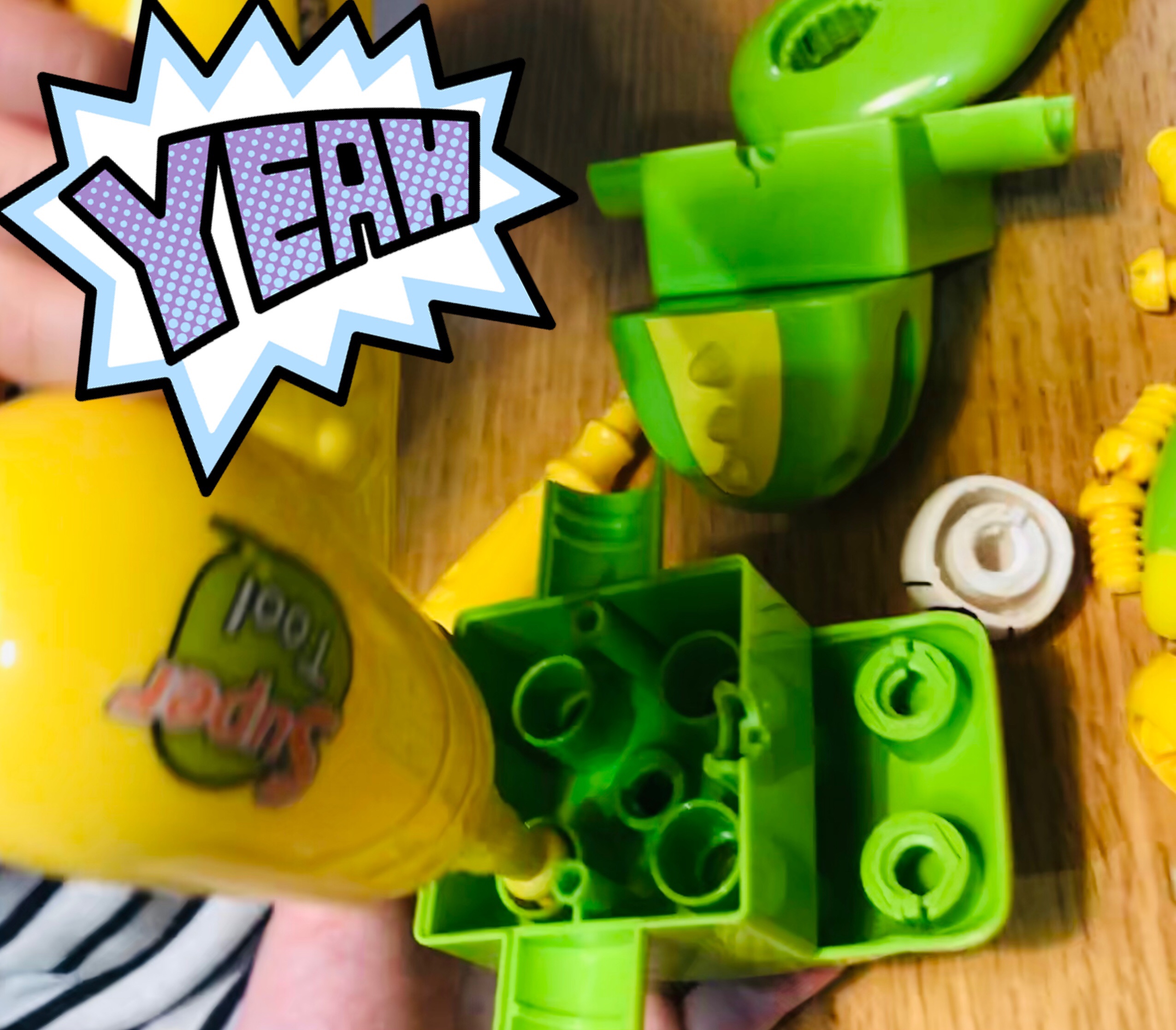 恐竜のパーツを組み立てるおもちゃ。電動ドリル付き。
